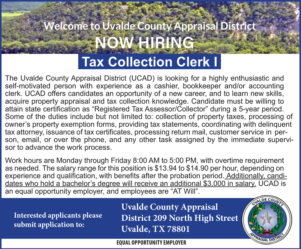 Tax Collection Clerk I Job Opening in Uvalde, TX
